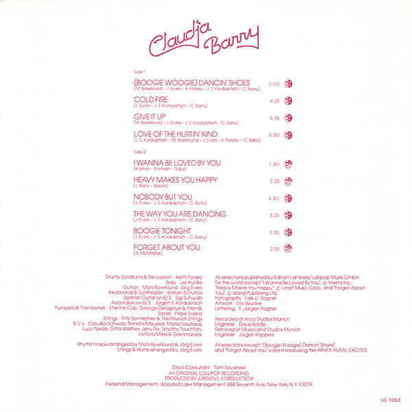 | Tracks | A1: (Boogie Woogie) Dancin' Shoes A2: Cold Fire A3: Give It Up A4: Love Of The Hurtin' Kind B1: I Wanna Be Loved By You B2: Heavy Makes You Happy B3: Nobody But You B4: The Way You Are Dancing B5: Boogie Tonight B6: Forget About You |