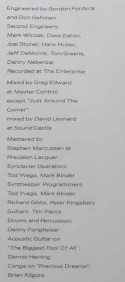 | Tracks | A1: Just Around The Corner A2: The Biggest Fool Of All A3: El Norte A4: I'll Send Them Your Way A5: Another Story B1: Coward's Courage B2: Every Moment B3: Precious Dreams B4: After Here Through Midland |